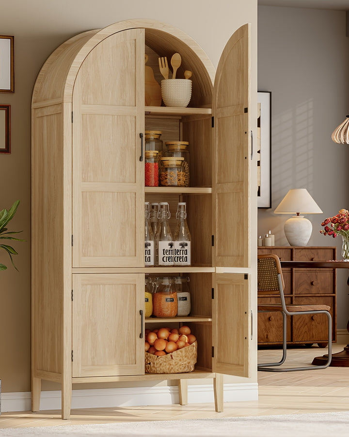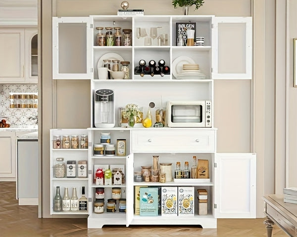 GAOMON Modern 67.9" Tall Cabinet: doors, drawers, microwave rack, for multi-spaces (White).