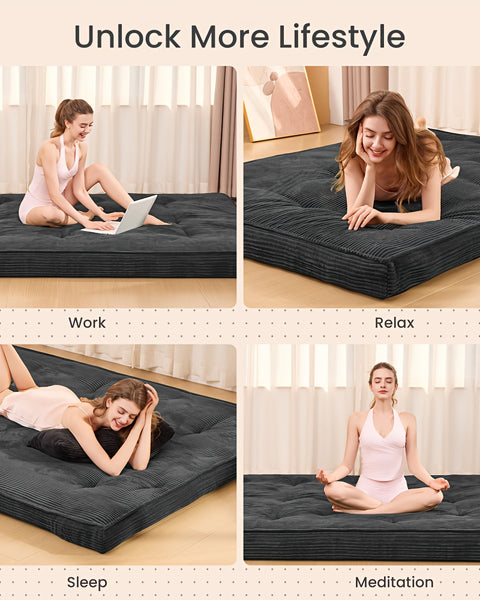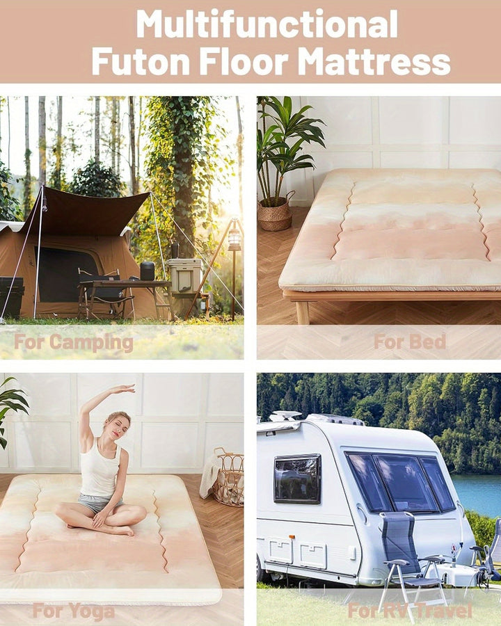 SWTMERRY 1000GSM Roll-Up Mattress Topper: breathable, foldable, portable, machine-washable grey tatami pad.