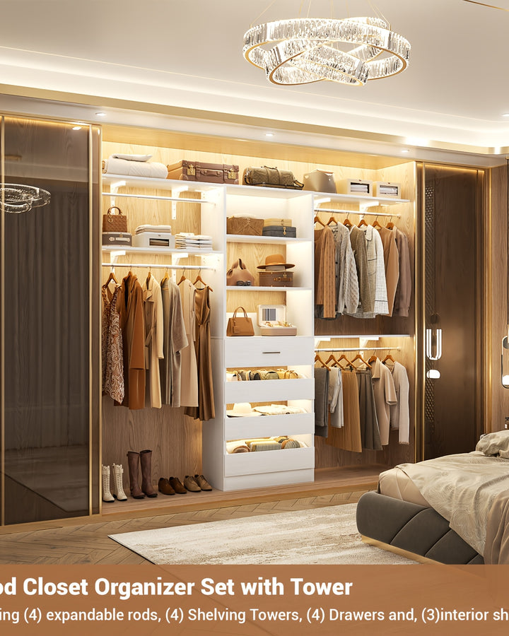 Aheaplus Wood Closet System: with drawers & hanging rods, for walk-in/small closets.