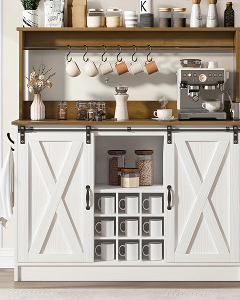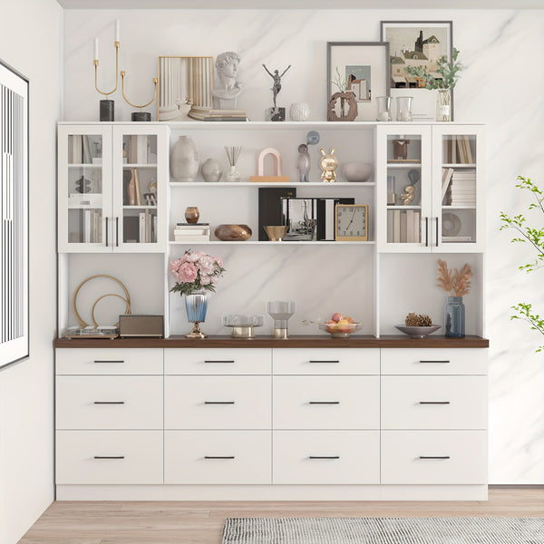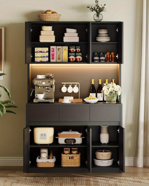 GAOMON Modern 67.9" Tall Cabinet: doors, drawers, microwave rack, for multi-spaces (White).