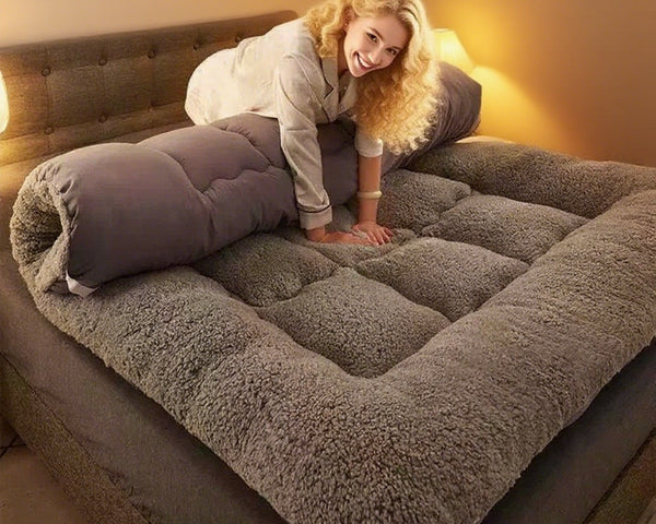 SWTMERRY 1000GSM Roll-Up Mattress Topper: breathable, foldable, portable, machine-washable grey tatami pad.