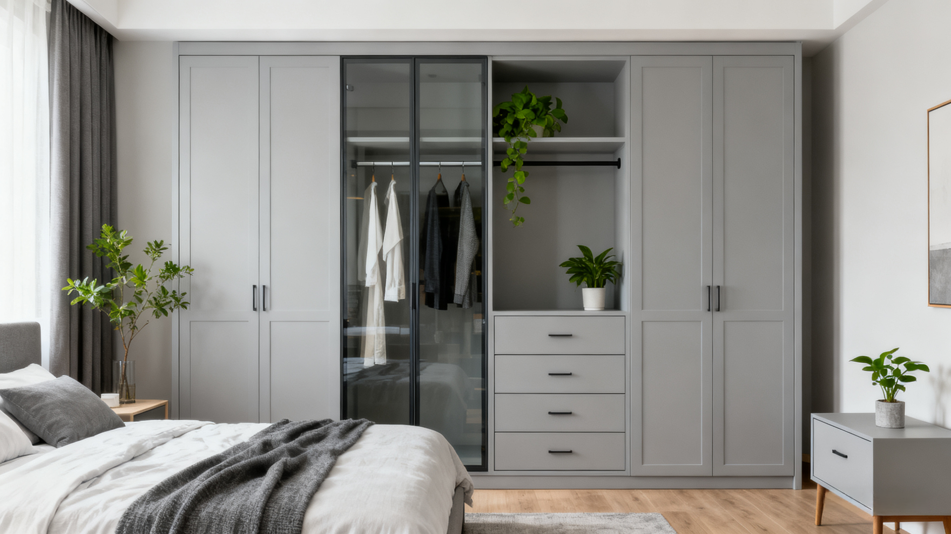 Large capacity storage cabinet, with a divided design, can categorically store clothes and miscellaneous items. Made of cold-rolled steel, it is sturdy and moisture-proof. The light gray appearance is versatile and can be matched with various styles. It saves space in the entrance and bedroom.