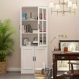 Elegant Bookcase Bookshelf Storage Cabinet with Glass Doors, Large Display Cabinet with Multi Layer Storage Shelves for Living Room And Office, Large Storage Space, White