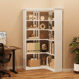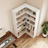 L Shaped Corner Bookshelf 5 Tier Large Wood Display Bookshelf 90° Corner Standing Bookcase