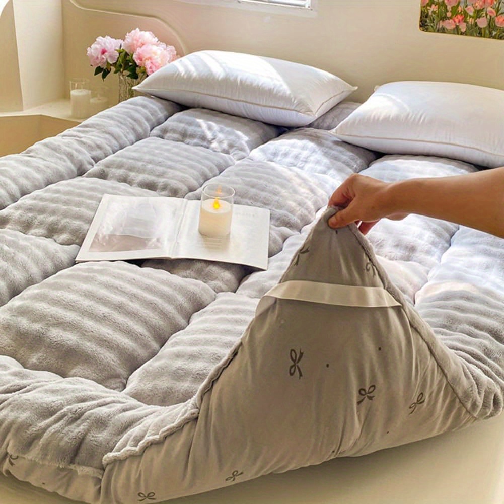 OASKYS Japanese Floor Mattress - Super Soft Velvet Foldable Roll-Up Tatami Mat, Thickened Comfortable Sleeping Pad for Dorm, Machine Washable, White & Gray Design, Dorm Room Bedding, Cozy Bedding, Highquality Bedding, OASKYS