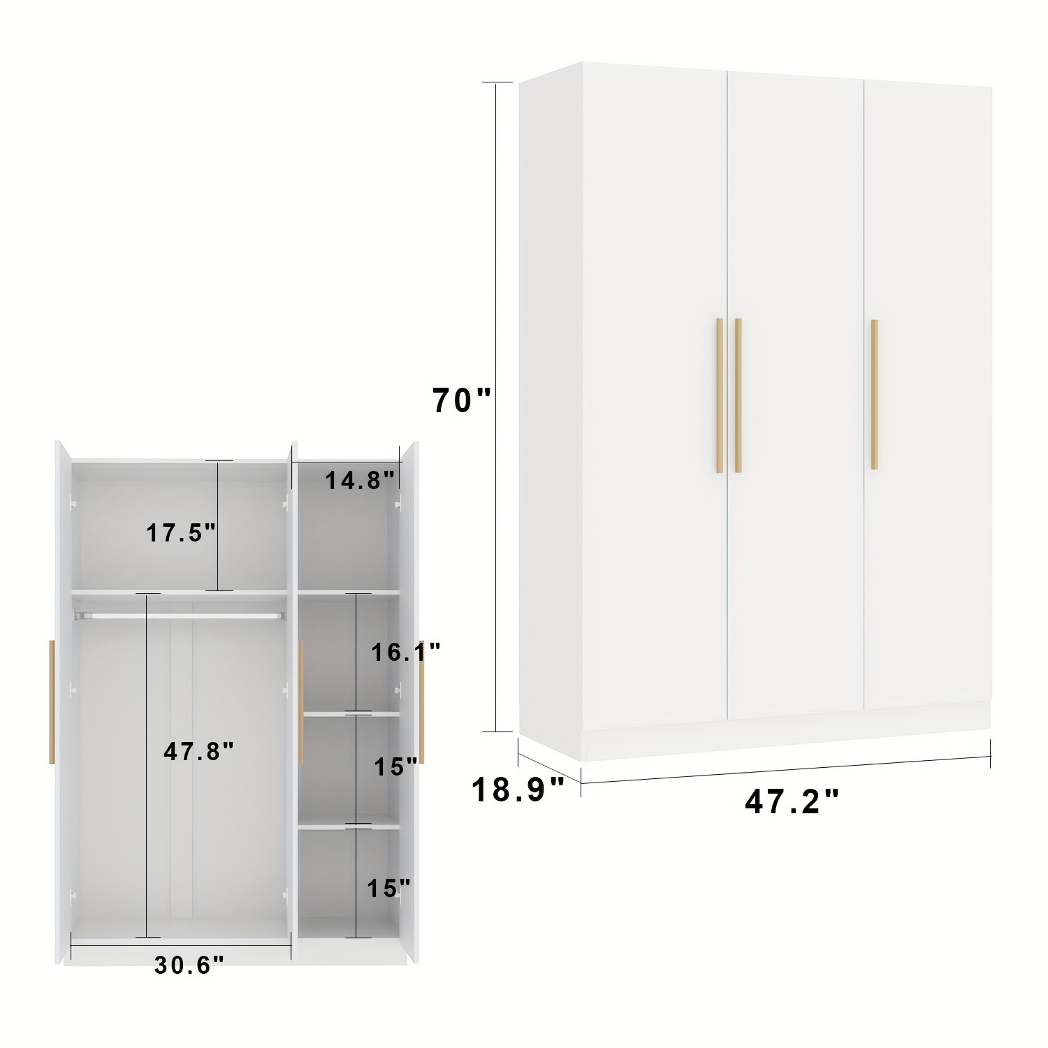 3 Door Large Wardrobe, 4 Folding Storage Area, Hanging Area, Bedroom Storage Wardrobe (70\