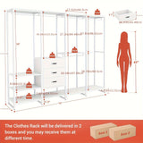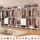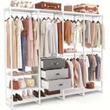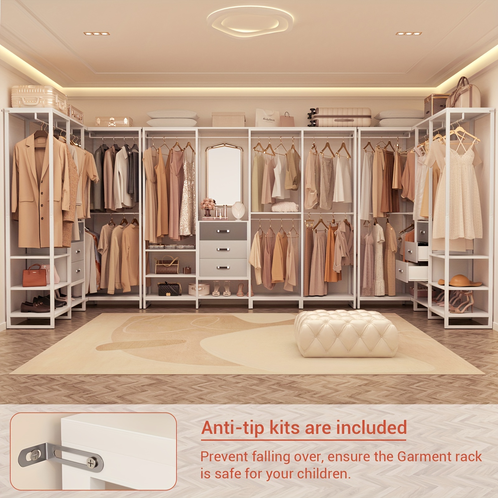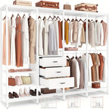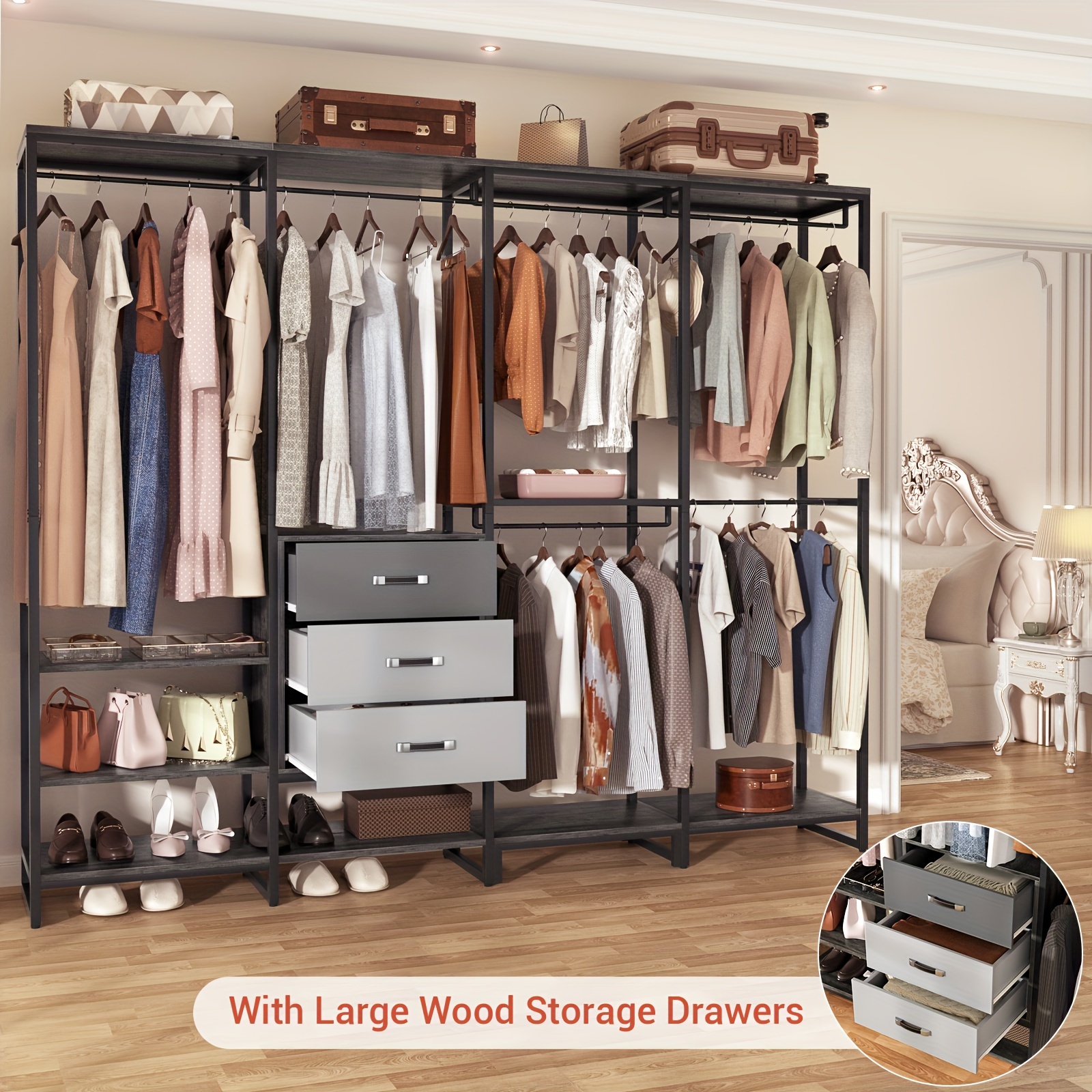 Wooden Closet Organizer Heavy Duty Wooden Closet Rack, Convertible L-Shaped Closet Storage with 3 Wooden Drawers