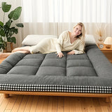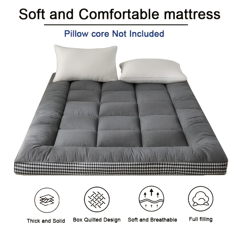 1pc 1200gsm Roll Up Mattress, Blue Green Pink Topper - 3.15-3.94inch Thick Quilted Bed Topper With Checkered Border, Thick Tatami Mat Sleeping Pad, Machine Washable, For Sofa Bed, Guest Room, Home Decor, Sofa Bed Mattress, Best Gifts For Family