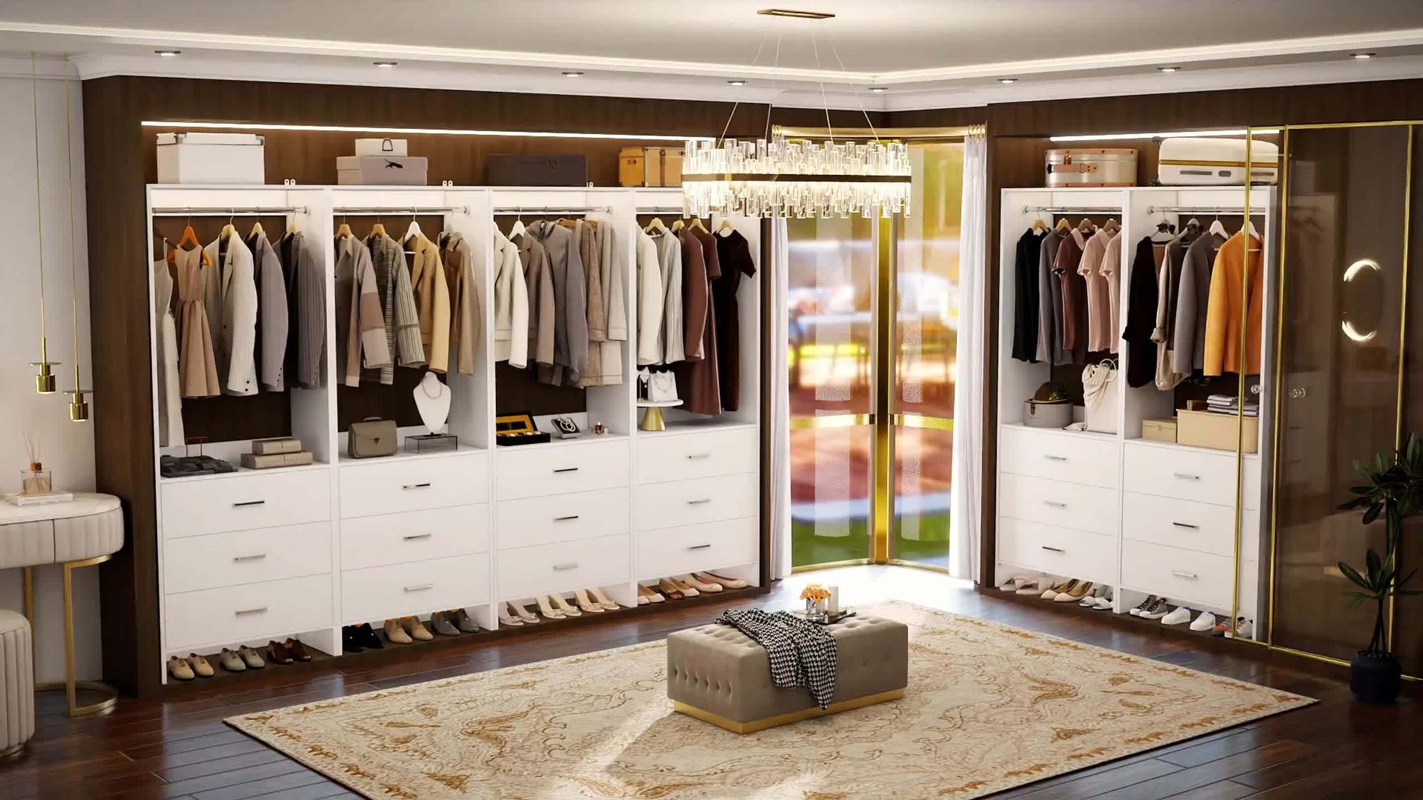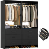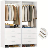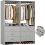 Aheaplus Closet System WithDrawers, Closet Organizer, Wood Closet Organizer System, Walk-in Closet Or Small Closets Wardrobe, Clothes Rack With Hanging Rods