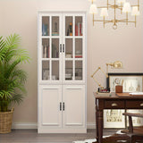 Elegant Bookcase Bookshelf Storage Cabinet with Glass Doors, Large Display Cabinet with Multi Layer Storage Shelves for Living Room And Office, Large Storage Space, White