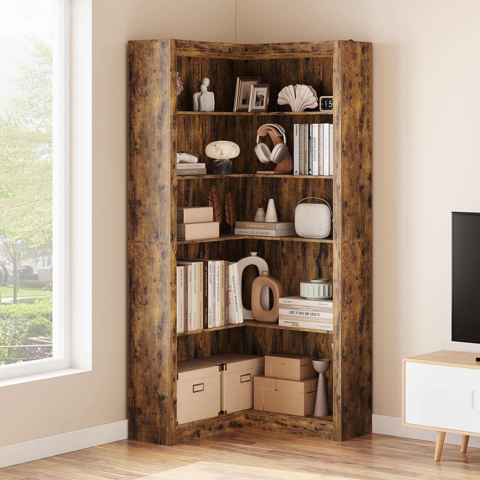 Heavy Duty Corner Bookshelf - Freestanding Storage Shelf with Space-Saving Tiered Design, Sturdy Hardwood Construction, Easy Assembly, Multi-Tier Shelving Unit for Home Office, Living Room, Study - Modern Open Organizer Shelf with -Tip Safety