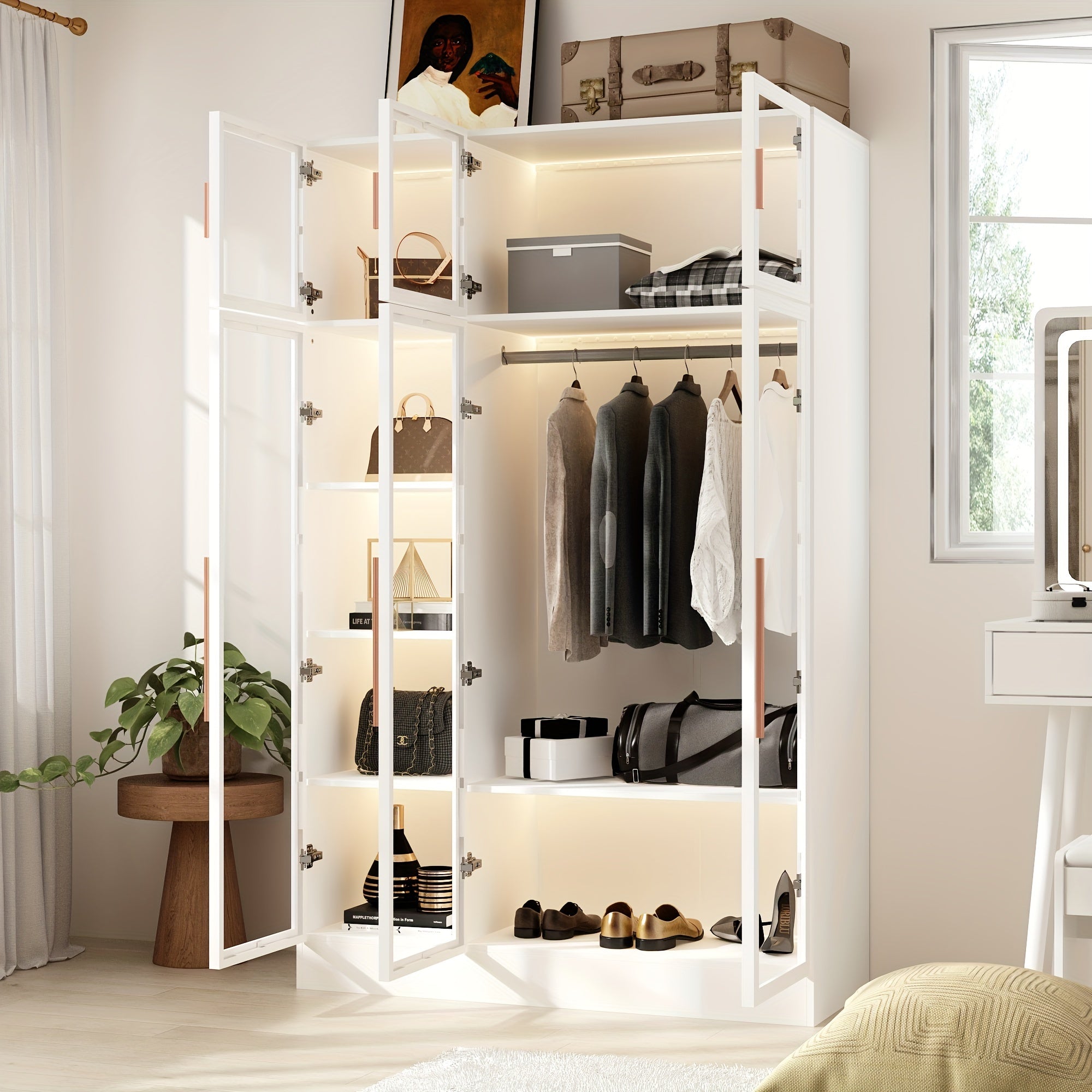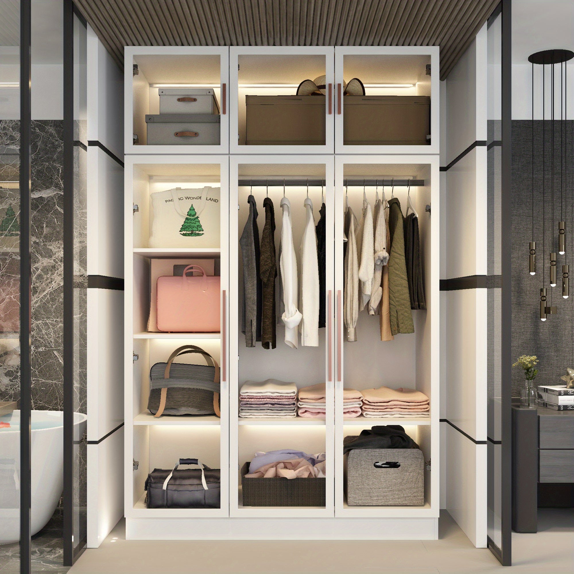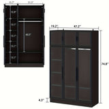 Modern Combo Armoire with All-Glass Doors & Solid Metal Frame, Diverse Storage Compartments, 74.8\