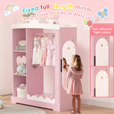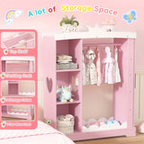 Pink Modern Kids Dress-Up Closet with Dual Mirrors, Jewelry Storage & Crown Top - Sturdy MDF Organizer with Hanging Rod, Shelves & Shoe Storage for Teen Girls Bedroom, 34.6\
